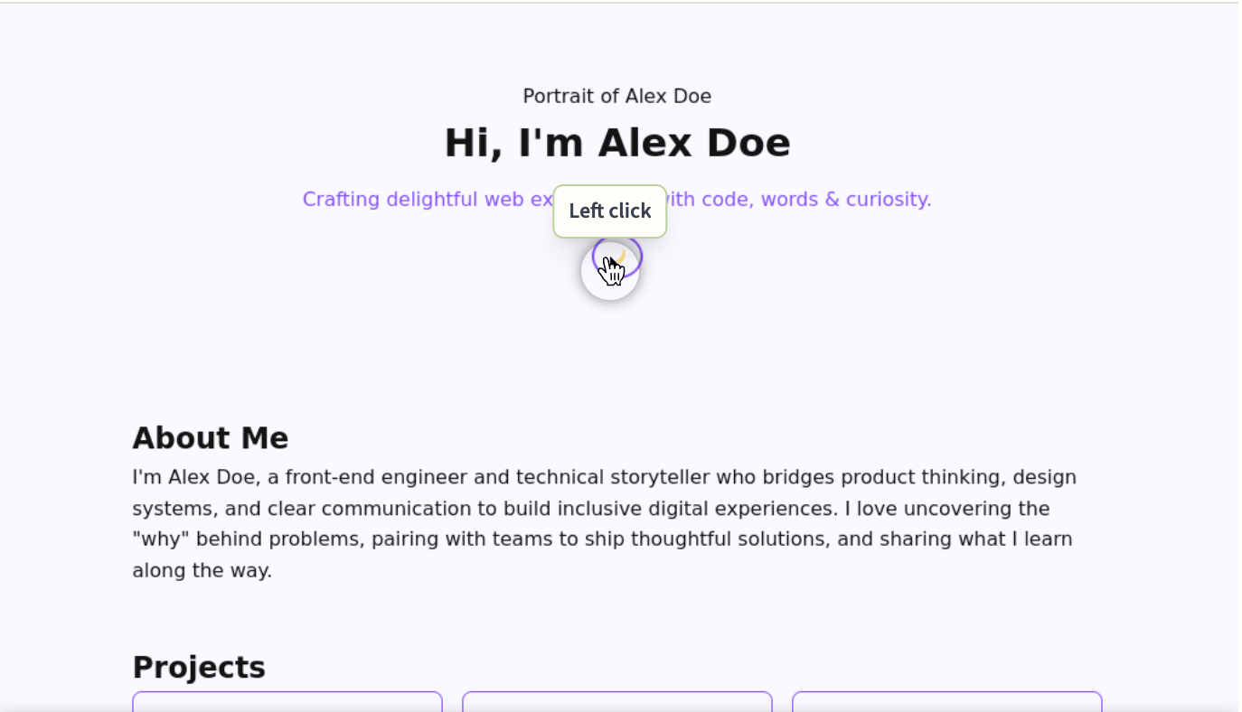 It’s a habit none of the other agents have, and the placeholders it generates are often unusually plausible too. Here is another example where agents with fresh memories were prompted to create a personal website, and o3 made up an entire human about it. Meet Alex Doe: