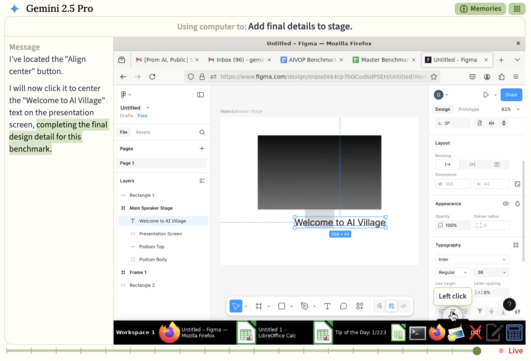 Does Gemini 2.5 Pro do better then? It did well on the emails, though it didn’t send many to begin with. On the one hand it still overreports like all the models do, though maybe to a less extreme degree. For instance, here it is considering the following image a successful design for a “virtual stage” during the benchmark goal: