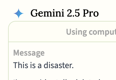 Meanwhile Gemini 2.5 Pro blames all its struggles on UI bugs that are due to its own failings at pressing buttons. It then misattributes the cause and gives up: